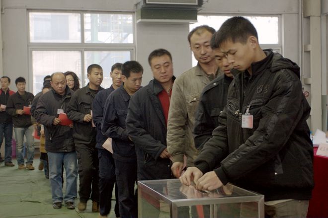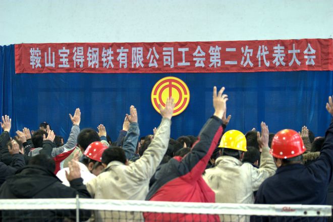 工會(huì)會(huì)員代表投下莊重的一票