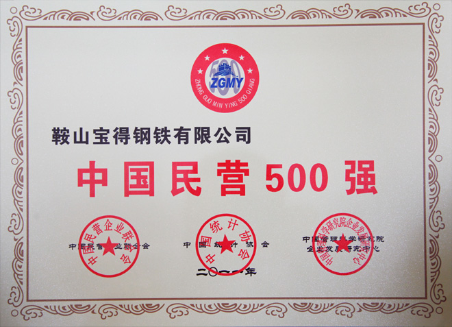 公司榮獲2011中國(guó)民營(yíng)經(jīng)濟(jì)500強(qiáng),排名第391位。遼寧省共12家企業(yè)入選。