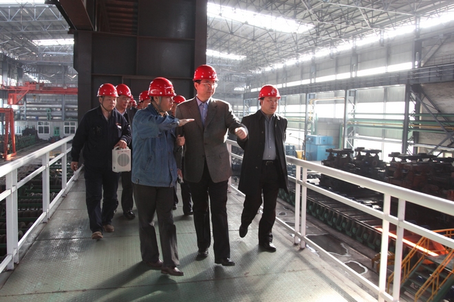 4月9日,市長(zhǎng)王世偉到公司調(diào)研,公司總經(jīng)理張鐵漢陪同到120萬(wàn)噸H型鋼生產(chǎn)線參觀,并向王市長(zhǎng)介紹公司生產(chǎn)情況。